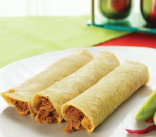 Tortilla con cochina o pollo pibil, bañado en caldito.