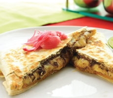 Rellena de cohinita o pollo pibil, frijolitos y cebolla morada.